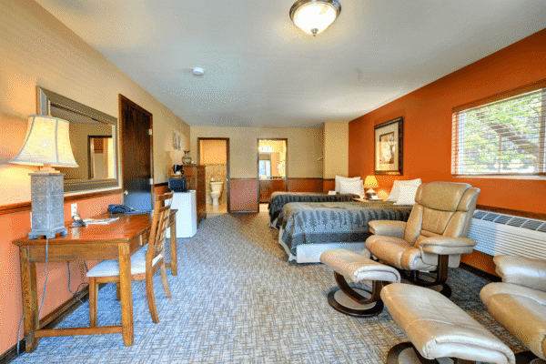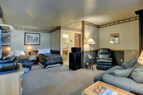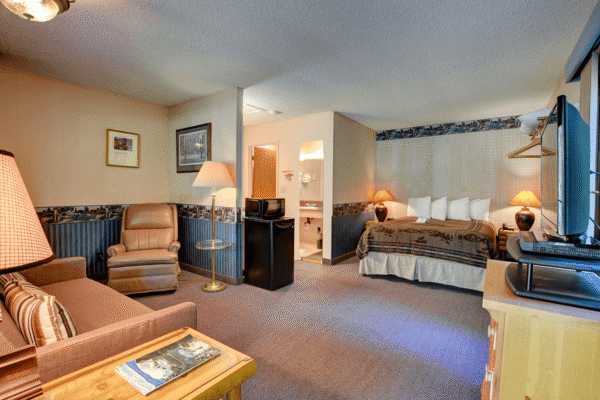 Snuggle up with the family — or that special someone — and enjoy beautiful river views from inside our studio cabins. These rooms are located near the main lodge so you have easy access to those amenities, too.