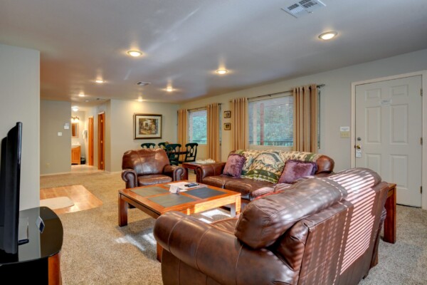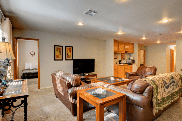 Taylor Creek are our larger units, can accommodate more people and have plenty of space for everyone. The larger living rooms create a great gathering space for your cohort, where you can swap stories about the day’s adventures, tell ghost stories before bedtime, or share your favorite jokes. These units are located on the creek side of the property with an incredible meadow view, and ramp/stair access. They also include multiple bedrooms and bathrooms, so everyone has enough room to stretch out and do their own thing.